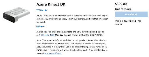 Tulad ng anumang bagong produkto, agad na lumitaw ang mga hamon. Sabik na ilunsad ang aming produkto, pinili naming gamitin ang Microsoft Kinect DK microphone array, na ipinagmamalaki bilang hardware-counterpart sa mga serbisyo ng pagsasalita at diumano’y nakatutok upang makuha ang pinakamainam na performance mula sa mga modelo ng awtomatikong pagkilala ng pagsasalita ng Azure. Bagama’t isang hindi maikakaila na mahusay na binuo, mahusay na dinisenyong device, ito ay may kumpletong aluminum housing, isang wide angle lens, isang depth camera, at isang 7-microphone array. Mayroon din itong malaking presyo na halos $400. Simula noong Abril 2021, ang Kinect DK ay nagkaroon ng seryosong isyu sa understock. Hindi pa rin ito available hanggang sa pagsulat nito ngayon sa Setyembre 2021. Ito ay lalong nagpatibay na ang Kinect ay hindi ang device para sa amin.