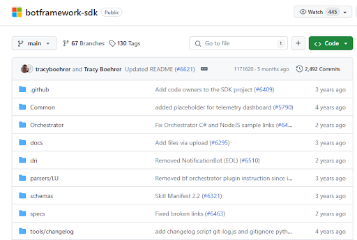 Microsoft Bot Framework और Azure AI Bot Service (साथ ही LUIS.ai) लाइब्रेरी, टूल और सेवाओं का एक संग्रह है जो आपको बुद्धिमान बॉट बनाने, परीक्षण करने, तैनात करने और प्रबंधित करने की सुविधा देता है। हालांकि, Bot Framework SDK के GitHub रिपॉजिटरी को 2024 तक README के अलावा दो साल से अधिक समय से अपडेट नहीं किया गया है: